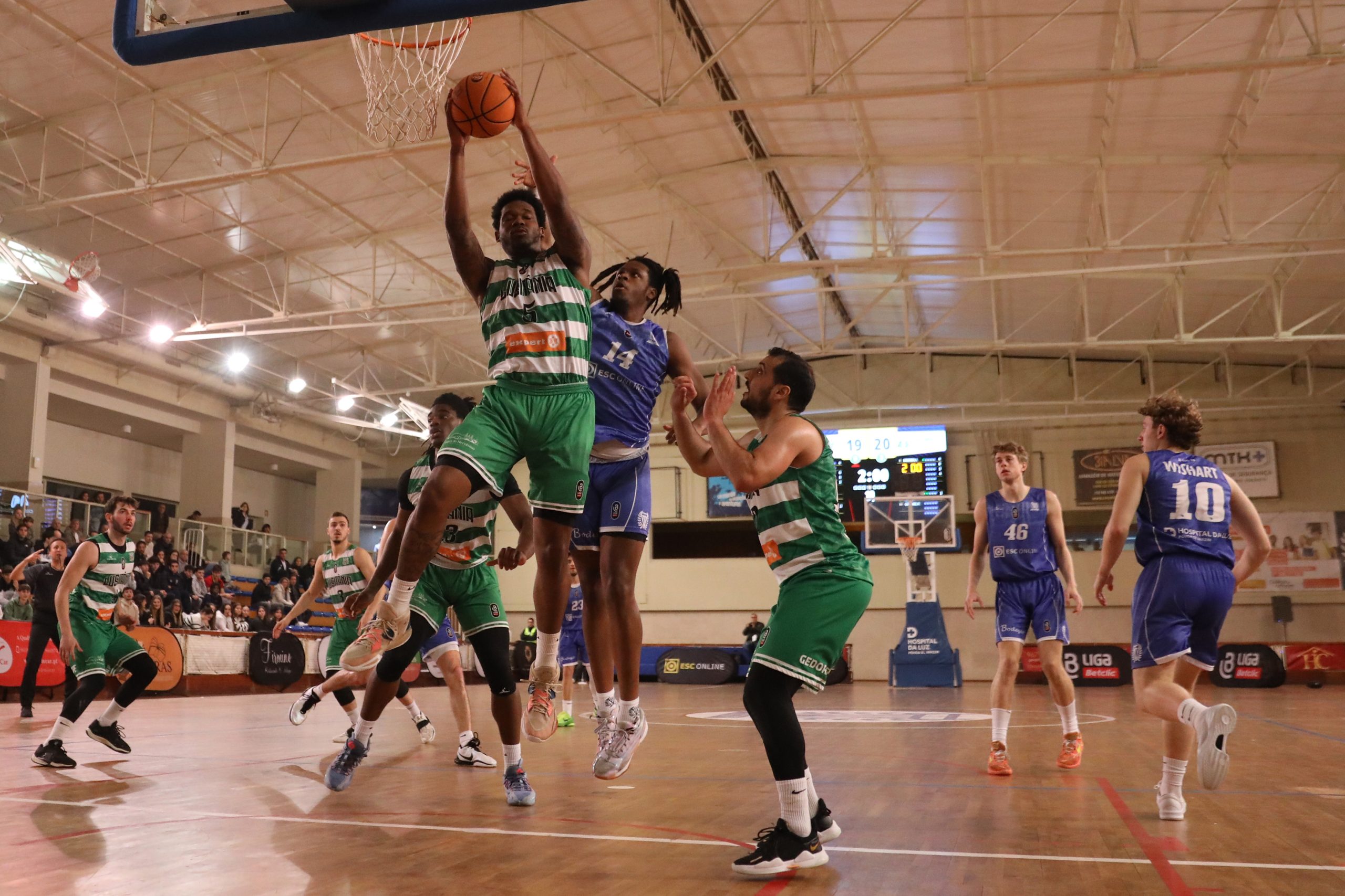 Os campeões nacionais resistiram e somaram dois pontos, num jogo em que marcaram nove triplos, sem esquecer 20 lances livres convertidos num total de 21 e 38 ressaltos. Aaron Broussard, com 25 pontos, deu nas vistas no emblema da Luz.