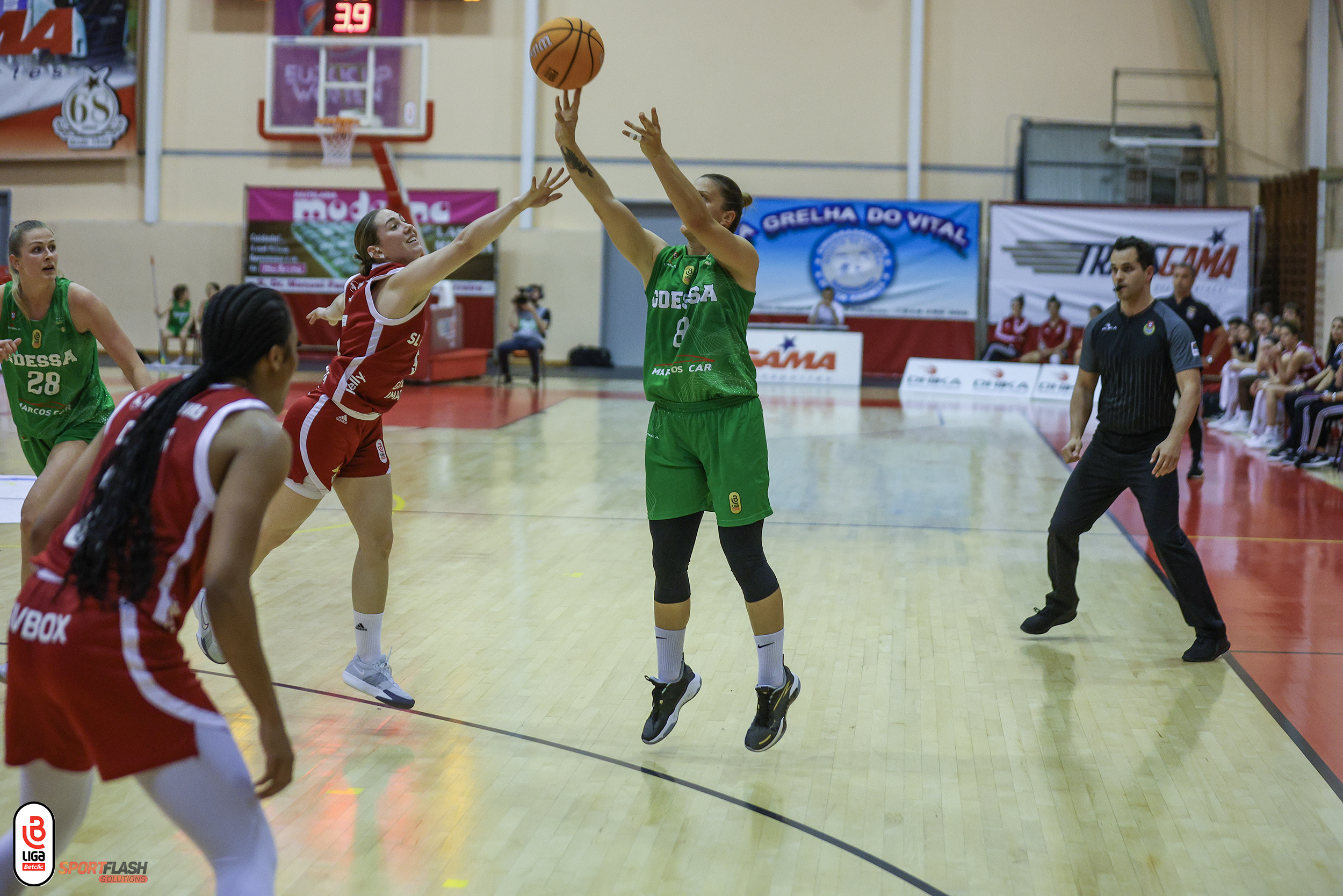 O emblema da margem sul do Tejo apontou 12 triplos, foi eficaz a 100% (6/6) da linha de lance livre, conquistou 32 ressaltos e obteve 13 roubos de bola. Milica Ivanovic, com 28 pontos, deu nas vistas no GDESSA.