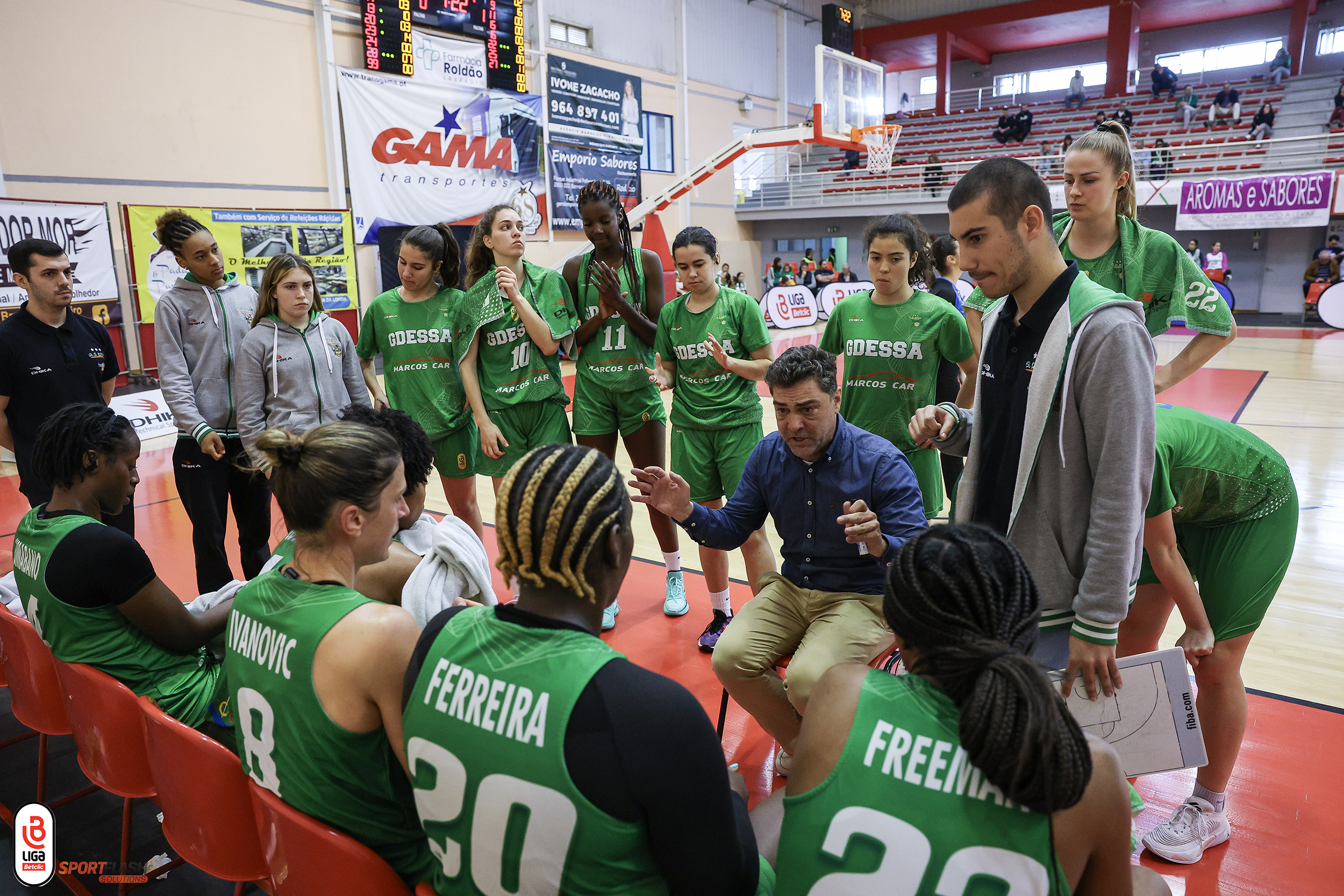 Ainda assim, do outro lado, André Martins conseguiu que as suas atletas, nos dois primeiros quartos, cometessem poucas faltas e fossem imperiais (16 ressaltos e 4 roubos de bola). Como tal, na pausa, o GDESSA vencia por 39-28 (22-14), com destaque para Freeman (12 pontos e 3 ressaltos) e Maianca Umabano (5 pontos, 1 ressalto e 2 assistências).