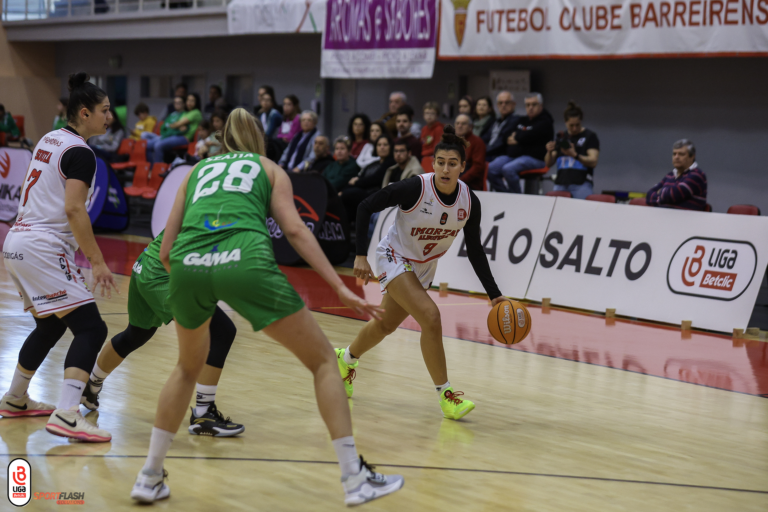 Entre as visitantes, Carolina Gonçalves (12 pontos, 1 ressaltos, 2 assistências e 1 bloqueio de lançamento) e Leonor Serralheiro (8 pontos, 1 ressalto, 1 assistência e 1 roubo de bola) eram as responsáveis pela resistência do Imortal.