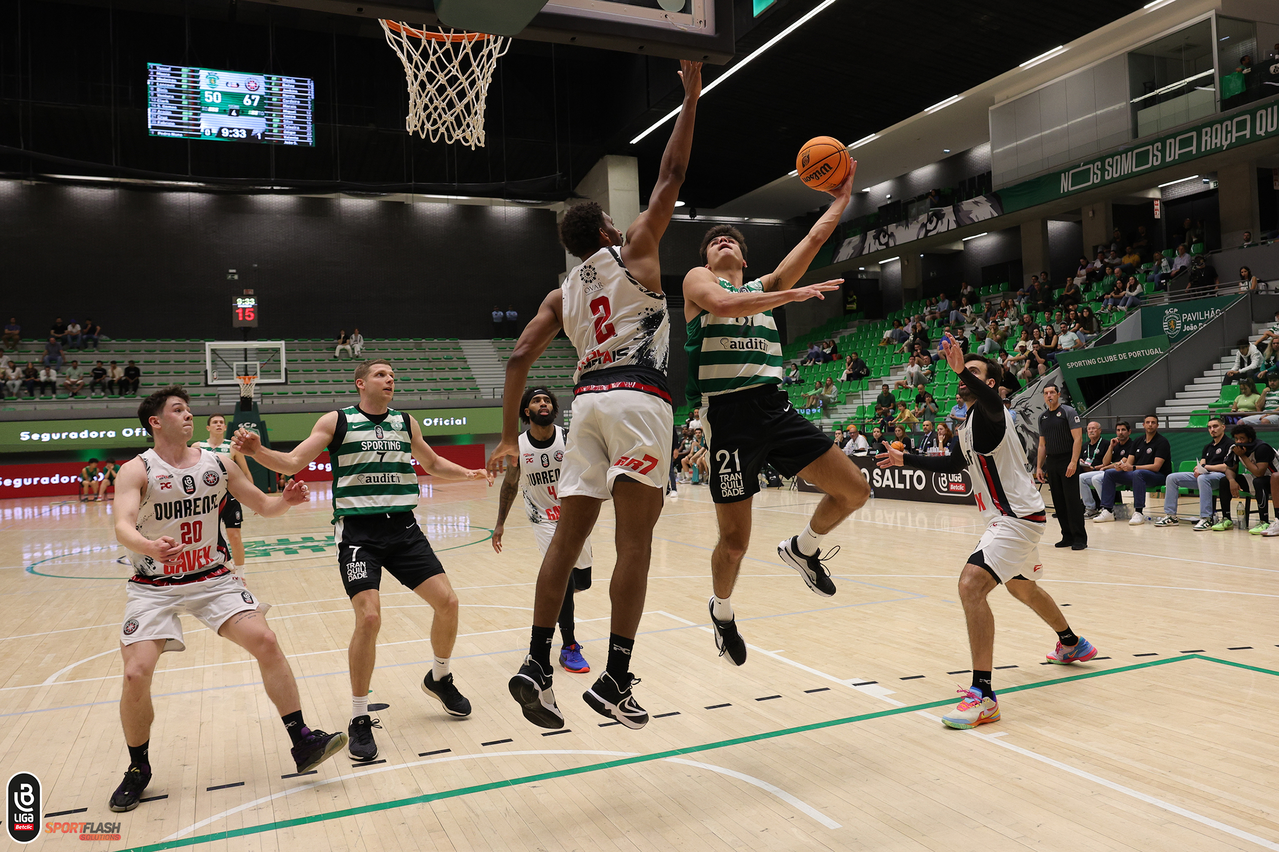 O Sporting CP recebeu a Ovarense GAVEX, que saiu vitoriosa (81-87) no primeiro jogo dos quartos-de-final da Liga Betclic Masculina.