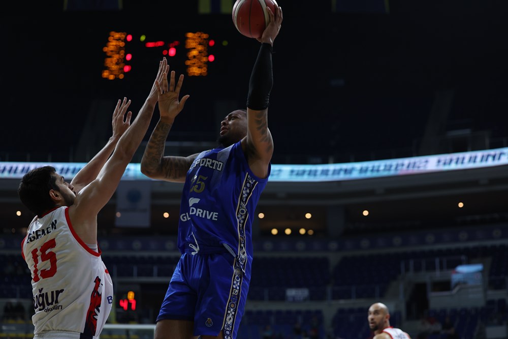 O FC Porto ganhou 42 ressaltos e teve em Aaron Harrison e Anthony Barber, ambos com 19 pontos, os seus elementos mais concretizadores.
