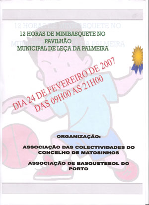 Na sequência de anteriores organizações, vai a AB Porto e a Associação das Colectividades do Concelho de Matosinhos, contando com o apoio da FPB – Comité Nacional de Minibasquete e da Federação das Colectividades do Distrito do Porto, realizar as “12 Horas de Minibasquete” – Convívio Interdistrital.Neste convite, que já é uma tradição na ABP, estarão presentes equipas de vários distritos (Braga; Viana do Castelo; Coimbra; Aveiro) e todas as equipas inscritas na ABP também por lá passarão num convívio que envolverá cerca de 600 “mini-atletas”.Bolas, Tshirts alusivas ao evento e outras lembranças serão distribuidas e cada mini-atleta também terá direito a um lanche.Calendário do evento segue em anexo ou então poderão encontrá-lo em:http://www.abp.pt/mb_torneios.asp Calendário.
