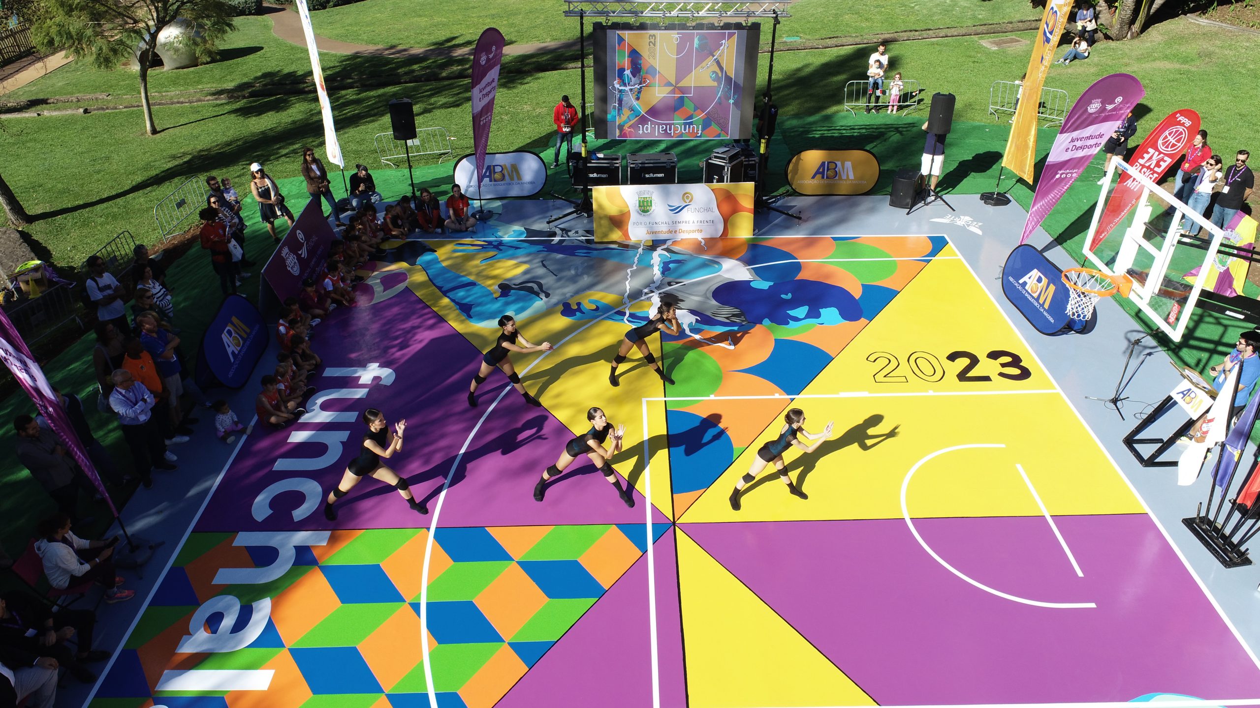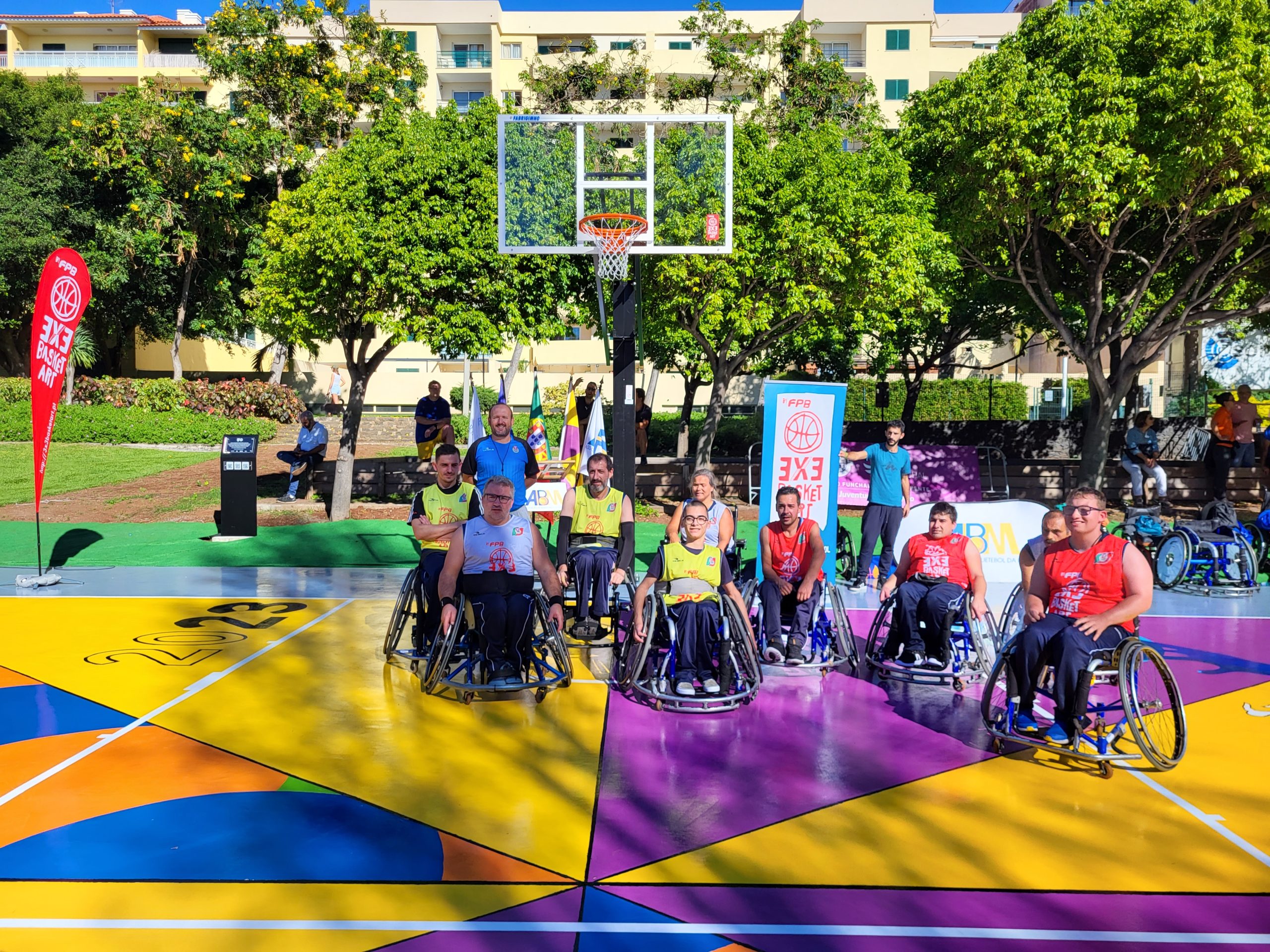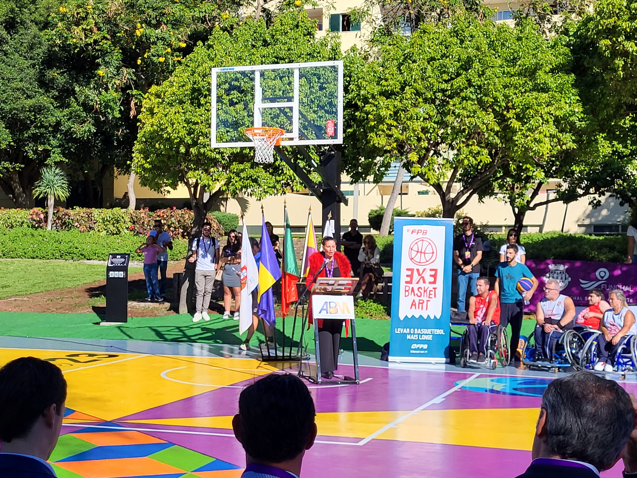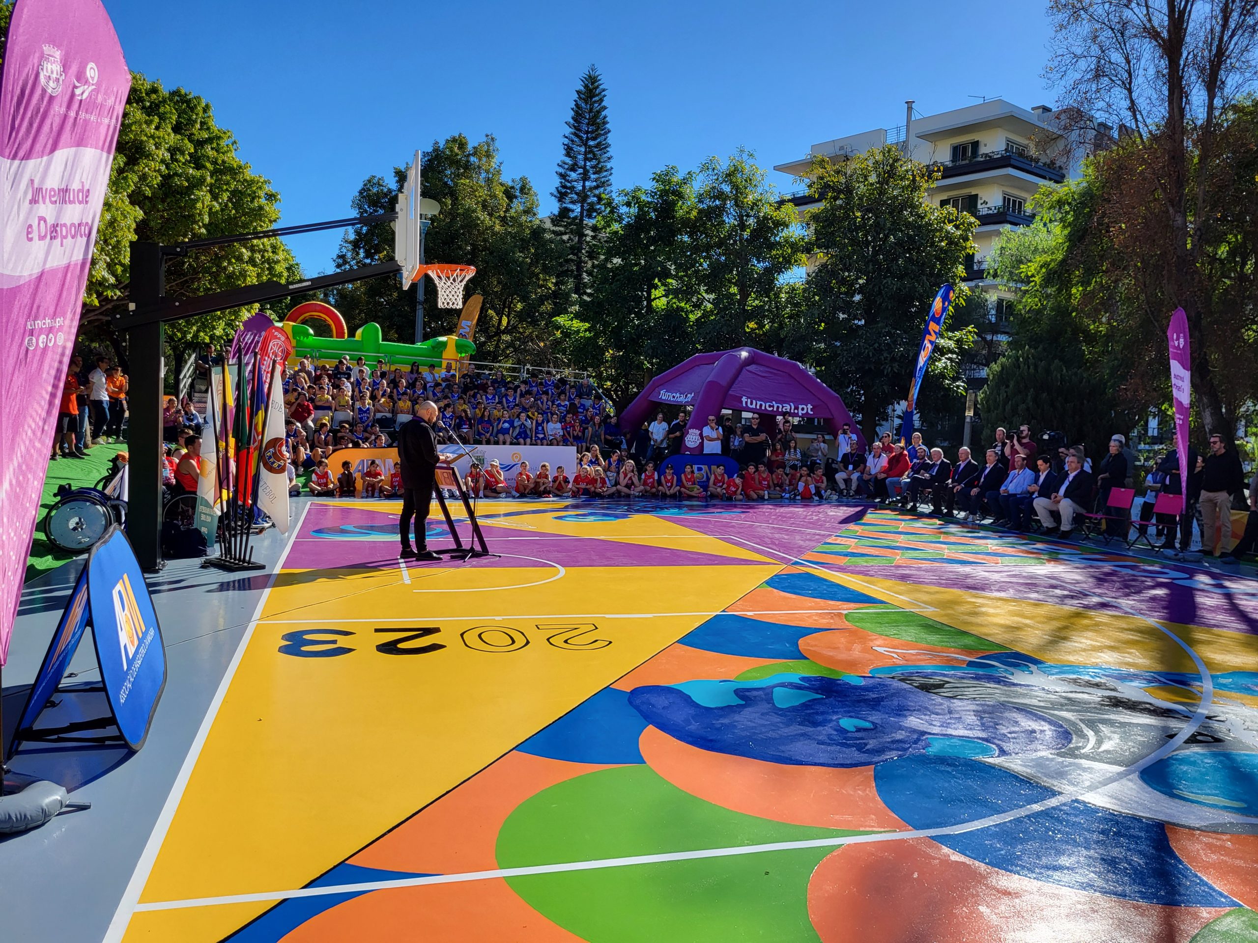 Foi no passado sábado, 9 de dezembro, que o 3×3 BasketArt voltou a “voar” até às ilhas, mais concretamente a Madeira, para a inauguração do primeiro campo 3×3 BasketArt naquela Região Autónoma, localizado no Jardim da Ajuda (32°38’18.2″N 16°56’34.2″W – aqui), município do Funchal.