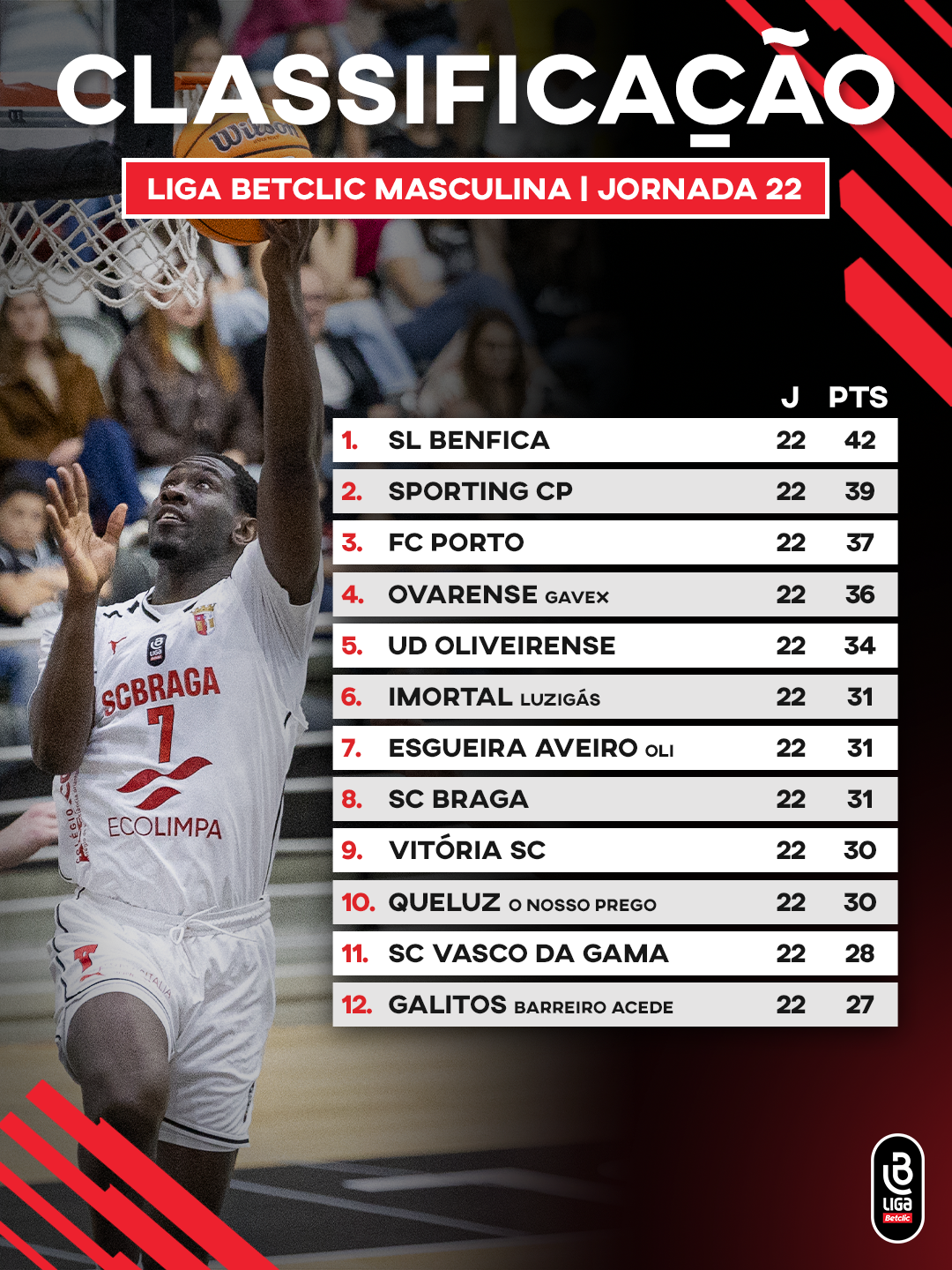 Terminou a 22.ª jornada e com ela a Fase Regular da Liga Betclic Masculina.