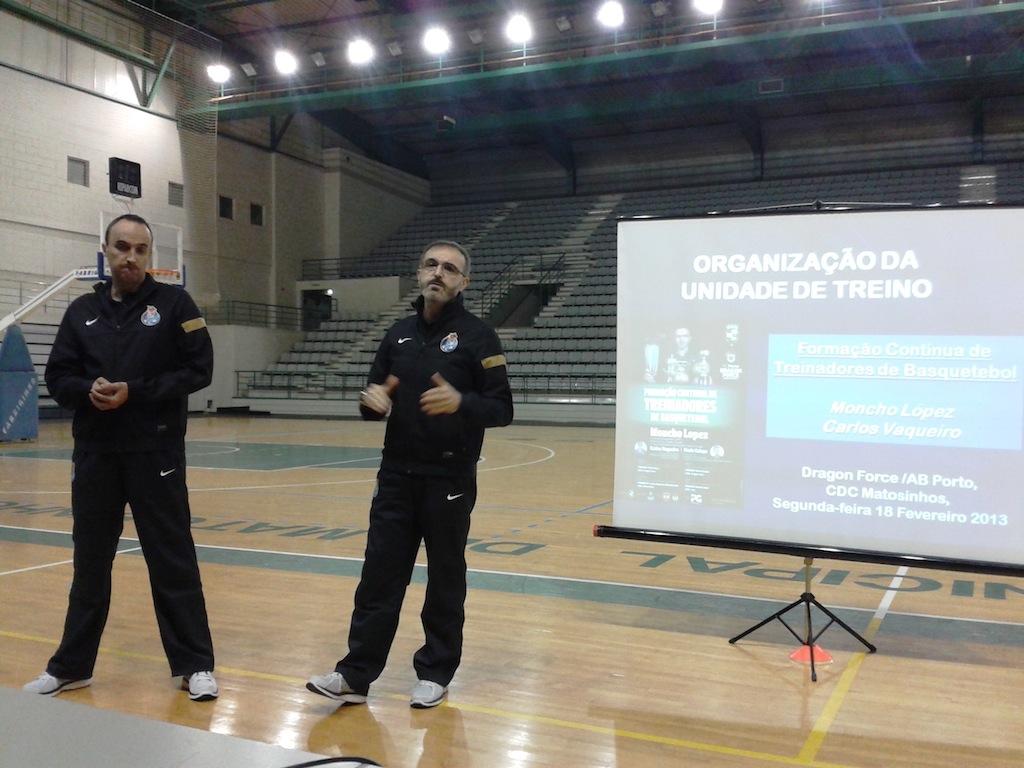 Aproveitando a experiência e o know-how dos técnicos da DRAGON FORCE Basquetebol: CARLOS VAQUEIRO e MONCHO LOPEZ, nesta 2ª Acção foram abordados aspectos decisivos relacionados com o PLANEAMENTO e ORGANIZAÇÃO da UNIDADE de TREINO.Numa parte inicial teórica foi abordado o COMO e o PORQUE escolhemos fazer um determinado tipo de treino/exercício. Foram apresentados diferentes tipos de treino e respectivos objectivos, diferenciando as correntes conceptuais do treino analítico vs jogo táctico, assim como o treino especializado vs treino de equipa. Foi reiterada a necessidade de maior valorização da TÁCTICA INDIVIDUAL no treino e foram elencados os ERROS HABITUAIS NO PLANEAMENTO DO TREINO.De seguida foi proposto um MODELO de UNIDADE de TREINO e ESTRATÉGIAS DE ABORDAGEM DE NOVOS CONTEÚDOS NO TREINO, questões que, posteriormente, foram revisitadas na prática.Esta sessão contou com a imprescindível colaboração do GDB LEÇA, que intermediou a cedência do espaço junto da MATOSINHOSPORT e que gentilmente disponibilizou a sua equipa SUB 18 Masculina para a parte prática.Ficou já registado na AGENDA a próxima Acção (3ª) que “regressará” ao DRAGÃO CAIXA, no próximo dia 11.03.2013 (2ª feira) das 20H30 às 22H30. Então, o tema a desenvolver será “TREINAR O LANÇAMENTO”, numa sessão 100% prática.