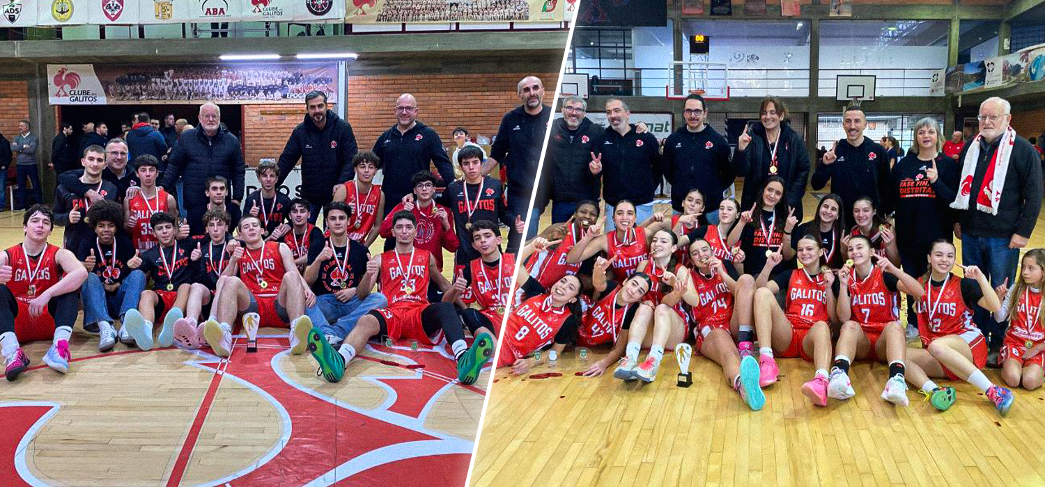Segundo fim de semana de fases finais distritais para a Associação de Basquetebol (AB) de Aveiro, e o Clube dos Galitos, com as suas equipas Galitos KO (Feminino) e Galitos IdentidadeDigital (Masculino), fazem o pleno e são campeões distritais de Sub16.