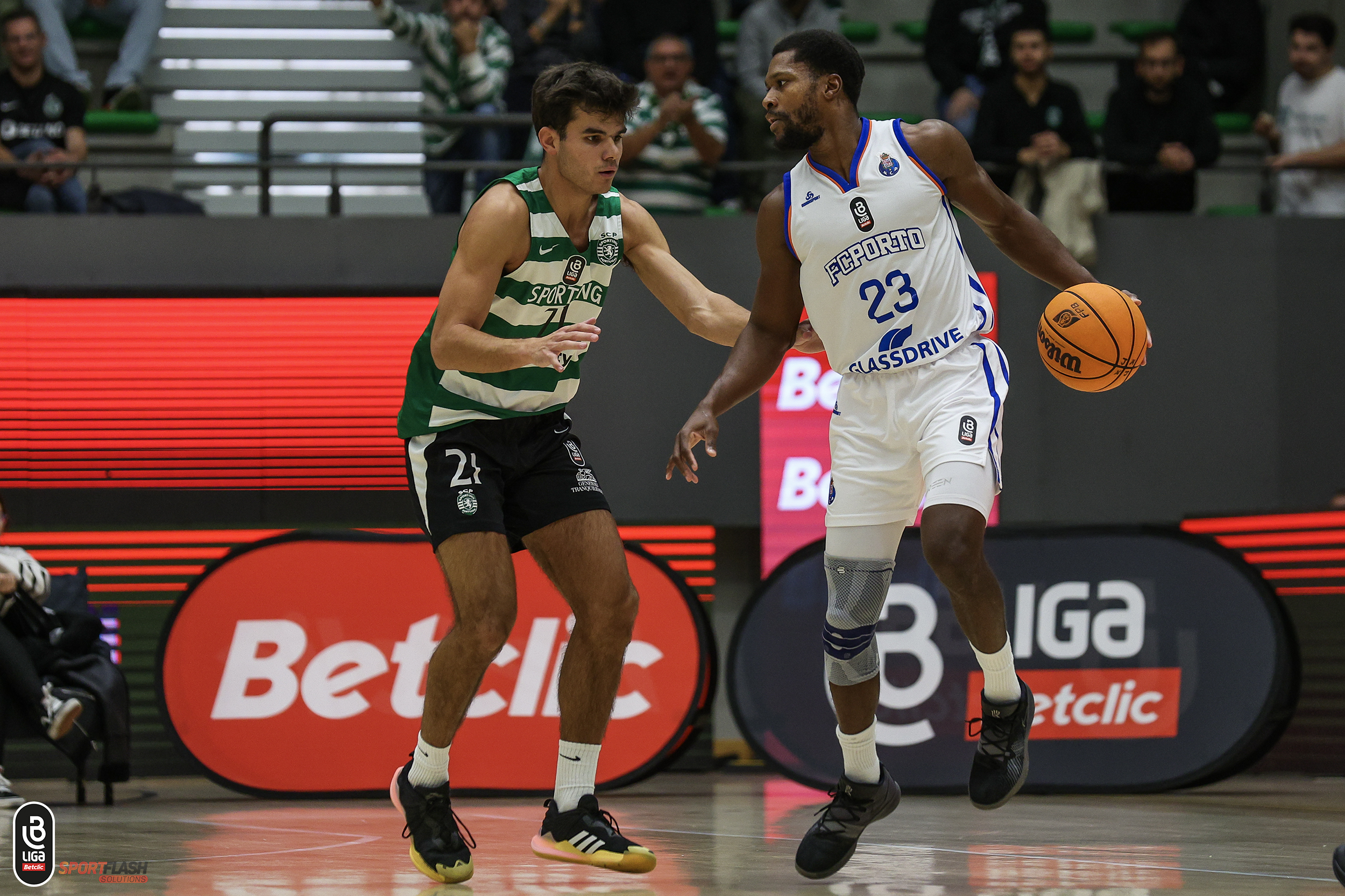 O Clássico prometeu e cumpriu, com os leões a receberem os dragões no jogo com maior destaque na 2.ª jornada da Liga Betclic Masculina. Os “verde e brancos” começaram a partida em desvantagem após o primeiro parcial de 22-26 a favor dos “azuis e brancos”, porém, a equipa da casa reagiu rapidamente no 2.º período e com um parcial de 21-12, os comandados de Luís Magalhães entraram no intervalo a vencer por cinco pontos (43-38).
