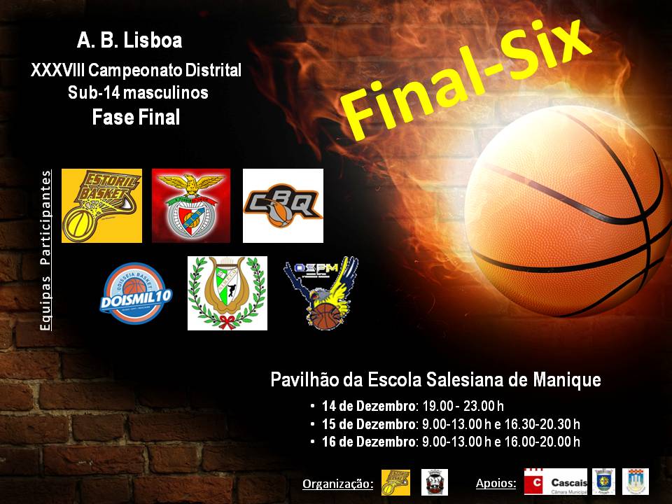 A prova será disputada num sistema de final-a-seis (Final-Six), estando em confronto as 6 equipas melhor classificadas na fase regular do campeonato. Para além do clube organizador, o Estoril Basket Clube, participarão na Final-Six o Sport Lisboa e Benfica, o Clube Basket de Queluz, o Odisseia Basket, a SIMECQ e o Núcleo de Basquetebol de Queluz.O vencedor desta Final-Six conquistará o título de Campeão Distrital do escalão sub-14 masculinos da época 2012/2013 Calendário: 1ª jornada: 6ª Feira – 14/12/2012 – das 19.00 às 23.00 h2ª jornada: Sábado – 15/12/2012 – das 9.00 às 13.00 h3ª jornada: Sábado – 15/12/2012 – das 16.30 às 20.30 h4ª jornada: Domingo – 16/12/2012 – das 9.00 às 13.00 h4ª jornada: Domingo – 16/12/2012 – das 16.00 às 20.00 h