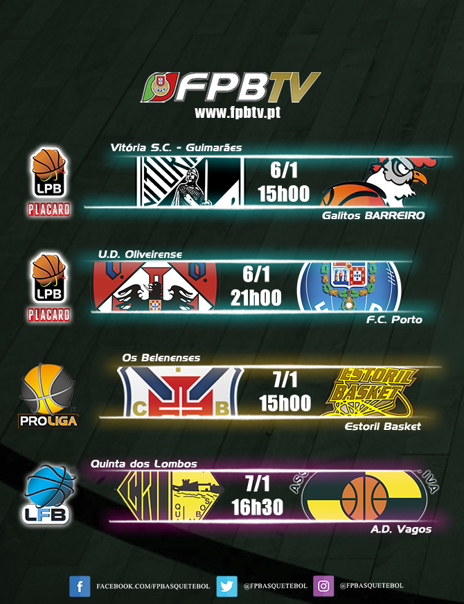 Por seu turno, no domingo, a Proliga assume todo o protagonismo com o acompanhamento da receção do Belenenses ao Estoril BC (15 horas), fechando a jornada basquetebolística com a transmissão do Quinta dos Lombos vs AD Vagos, referente à Liga Feminina, e marcado para as 16h30.