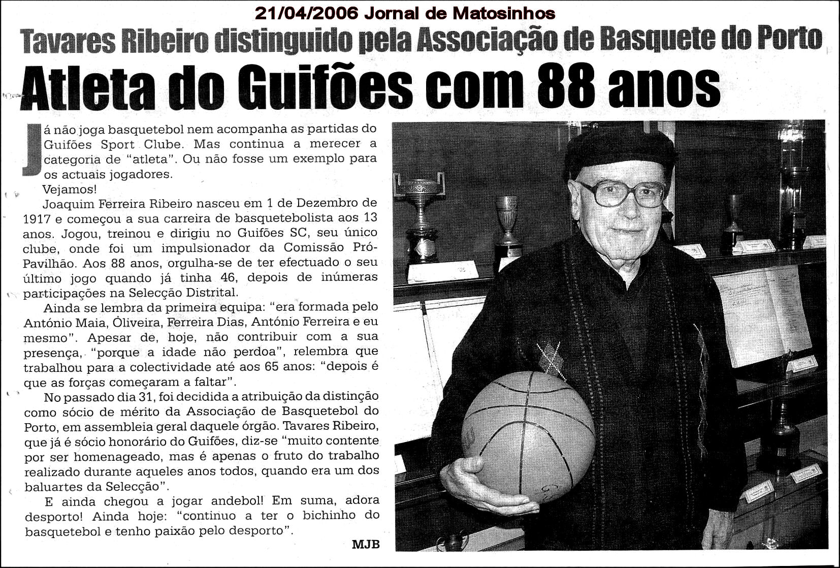 De acordo com o site oficial do Guifões SC o sr. Joaquim Ferreira Ribeiro, “aos 13 anos já praticava a modalidade na equipa de infantis e aos 18 anos já integrava a selecção distrital, depois de passar pelos vários escalões do clube. No plano desportivo foi jogador de eleição e campeão, anos consecutivos, da 1ª divisão; foi treinador de varias equipas do Guifões S.C., sempre demonstrando um grande empenho e uma grande vontade de vencer, transmitindo com a sua frontalidade esses mesmos valores aos seus atletas. Também como dirigente serviu o Guifões S.C. mantendo sempre o mesmo rigor e vontade de dinamizar o clube. Foi o grande obreiro da construção do Pavilhão Engº António Maia, liderando um punhado de Guifonenses de grande valor que lutaram para que fossem ultrapassadas todas as barreiras que se depararam na edificação da “casa” de todos nós. Enfim, um grande guifonense este “nosso SR. TAVARES” que ao partir deixa o clube mais pobre.”Por este triste acontecimento, a ASSOCIAÇÃO DE BASQUETEBOL DO PORTO, apresenta os seus mais sinceros votos de pesar a toda a “Familia” do GUIFÕES SC, seu clube de sempre, aos seus amigos e muito particularmente aos seus familiares directos.