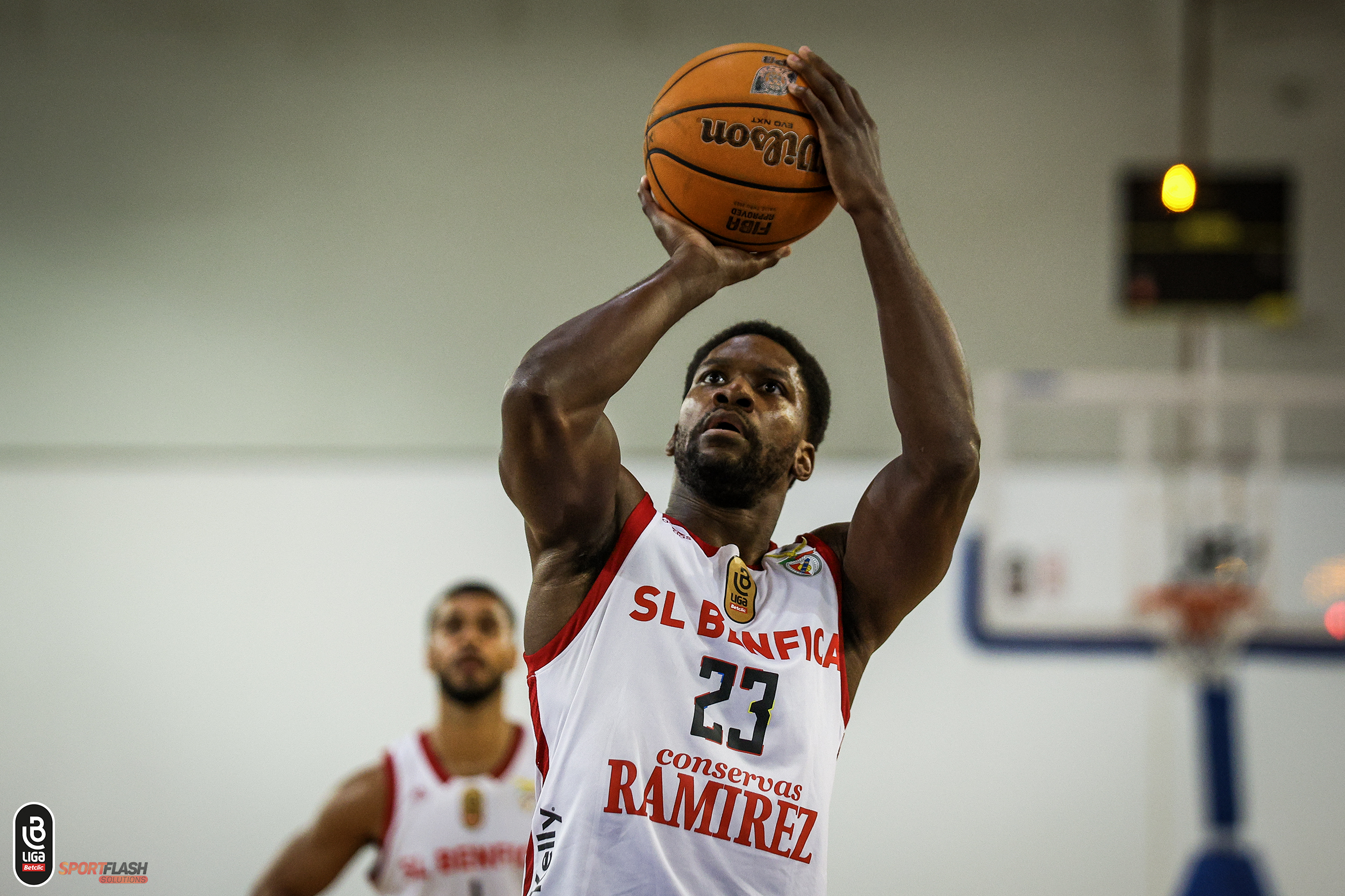Larry Kuimi com sinal mais na Liga Betclic Masculina