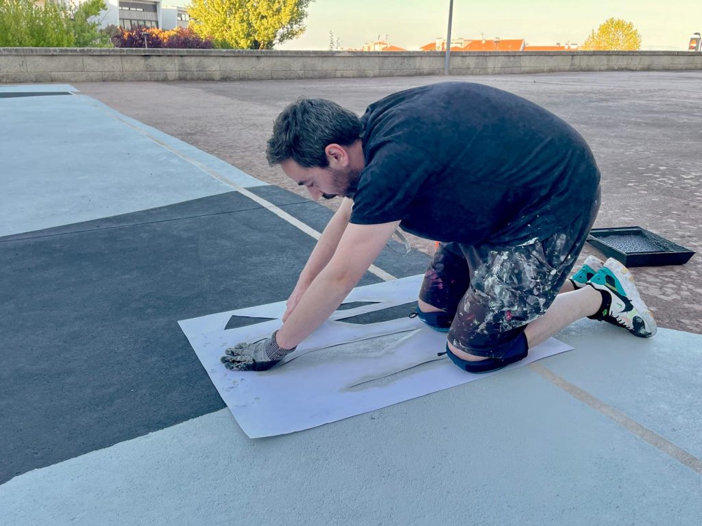 O artista reconhecido pelo seu trabalho no panorama da arte urbana nacional aventura-se num novo território criativo: a pintura de um campo de basquetebol. “Foi muito desafiante pois foi o primeiro trabalho que realizei no chão e não dominando a técnica foi bastante desafiante”, explica o artista. Ainda assim, o resultado é uma fusão poderosa entre estética e funcionalidade, onde cada linha, cor e forma contribui para uma nova narrativa do espaço público.