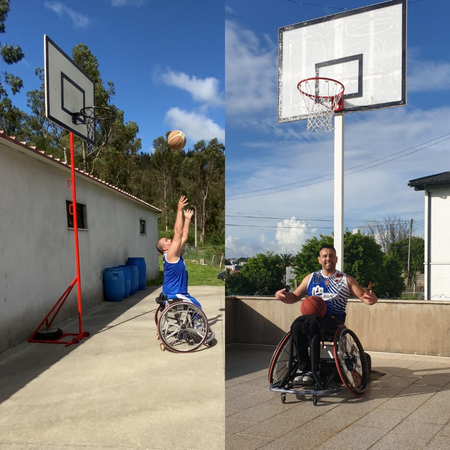 Márcio Dias e Jorge Palmeira construíram a sua própria tabela. Os internacionais A de basquetebol em cadeira de rodas (BCR), atletas da APD Braga, fintaram o desgaste do confinamento e, sem perspetivas de regresso aos pavilhões ou de utilizar os campos ao ar livre, puseram, literalmente, mãos à obra. Até lá, vão calibrando a pontaria, em casa.