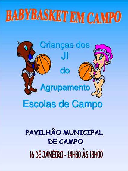 No próximo domingo, dia 16 de Janeiro, das 14:30 às 18:00 vai-se realizar o I Convívio Babybasket das crianças dos Jardins de Infância / Pólos de Prolongamento deste Agrupamento no Pavilhão Municipal de Campo.