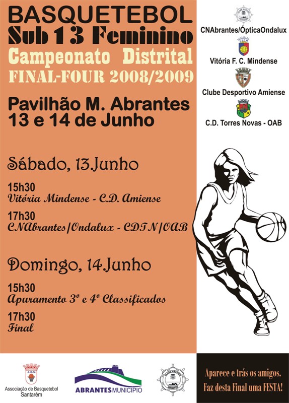 A Fase Final do Campeonato Distrital de Sub13F, disputada nos passados dias 13 e 14 de Junho no Pavilhão Municipal de Abrantes, serviu para confirmar a classificação da fase regular da prova, acentuando de forma mais clara as diferenças entre as equipas presentes.No primeiro dia Náutico de Abrantes e Amiense, primeiro e segundo classificados da fase regular, venceram com alguma facilidade os seus oponentes, CDTN e Vitória Mindense, respectivamente.No jogo de atribuição do 3º e 4º lugar, o Mindense conseguiu uma vantagem de 11 pontos ao intervalo, após algum equilíbrio verificado durante quase toda a primeira parte. Era de esperar uma reacção do CDTN na segunda parte, no entanto o Vitória Mindense soube gerir o jogo da melhor forma e ampliar a sua vantagem, ficando o resultado final em 66-35.O jogo da final, entre Náutico de Abrantes e C.D. Amiense, apesar do nervosismo inicial de ambas as equipas e uma fraca percentagem de concretização perto do cesto, as jogadoras mostraram sempre grande determinação e empenho, libertando-se do desacerto inicial e proporcionando um bom jogo ao numeroso público presente. O Náutico de Abrantes acabou por vencer com alguma facilidade (86-50) sagrando-se vencedor desta prova.Duas notas; uma para o público presente (cerca de uma centena de pessoas) que soube apoiar e incentivar as atletas durante o decorrer dos jogos, outro para as equipas de arbitragem, quase todos árbitros jovens (com pouco tempo de arbitragem) mas com um futuro promissor, sabendo estar ao nível das restantes equipas.