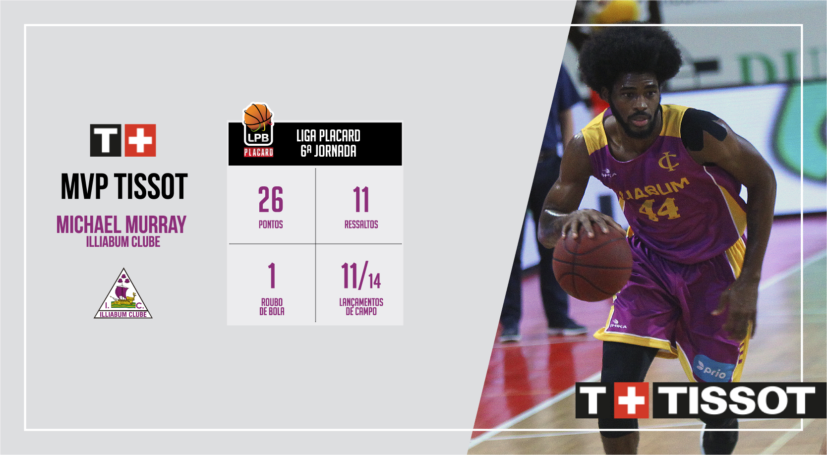 MVP Tissot da jornada | Michael Murray (Illiabum Clube): 26pts, 11res, 1rb, 39.5MVP
