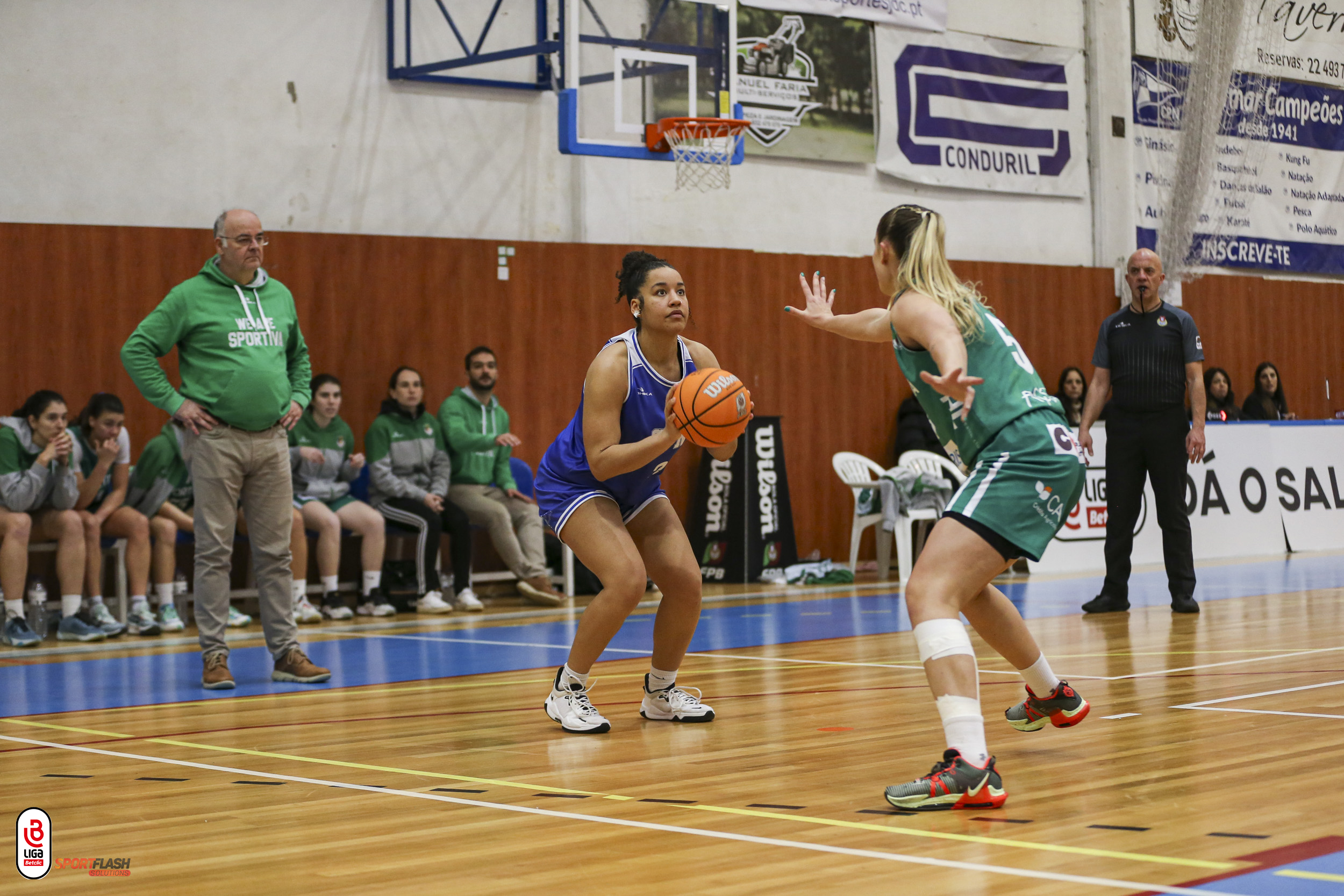Nos Lombos, que só falharam um lance livre (16/17) e que ganharam 54 ressaltos, Madelynn Utti (14 pontos e 15 ressaltos) teve sinal mais.