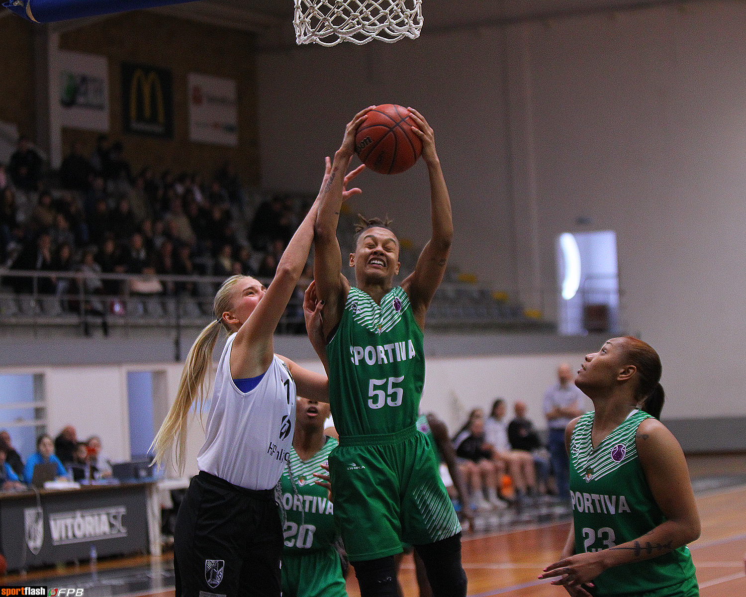 A segunda parte ditou um abrandamento no ritmo do marcador (apenas 14 pontos marcados no terceiro período), com o Sportiva a manter-se na liderança do jogo. As visitantes mantiveram-se na liderança do marcador através da forte presença nas tabelas (mais 15 ressaltos do que o Vitória) e da maior eficácia no momento de lançar ao cesto, fixando o resultado nos 50-59.