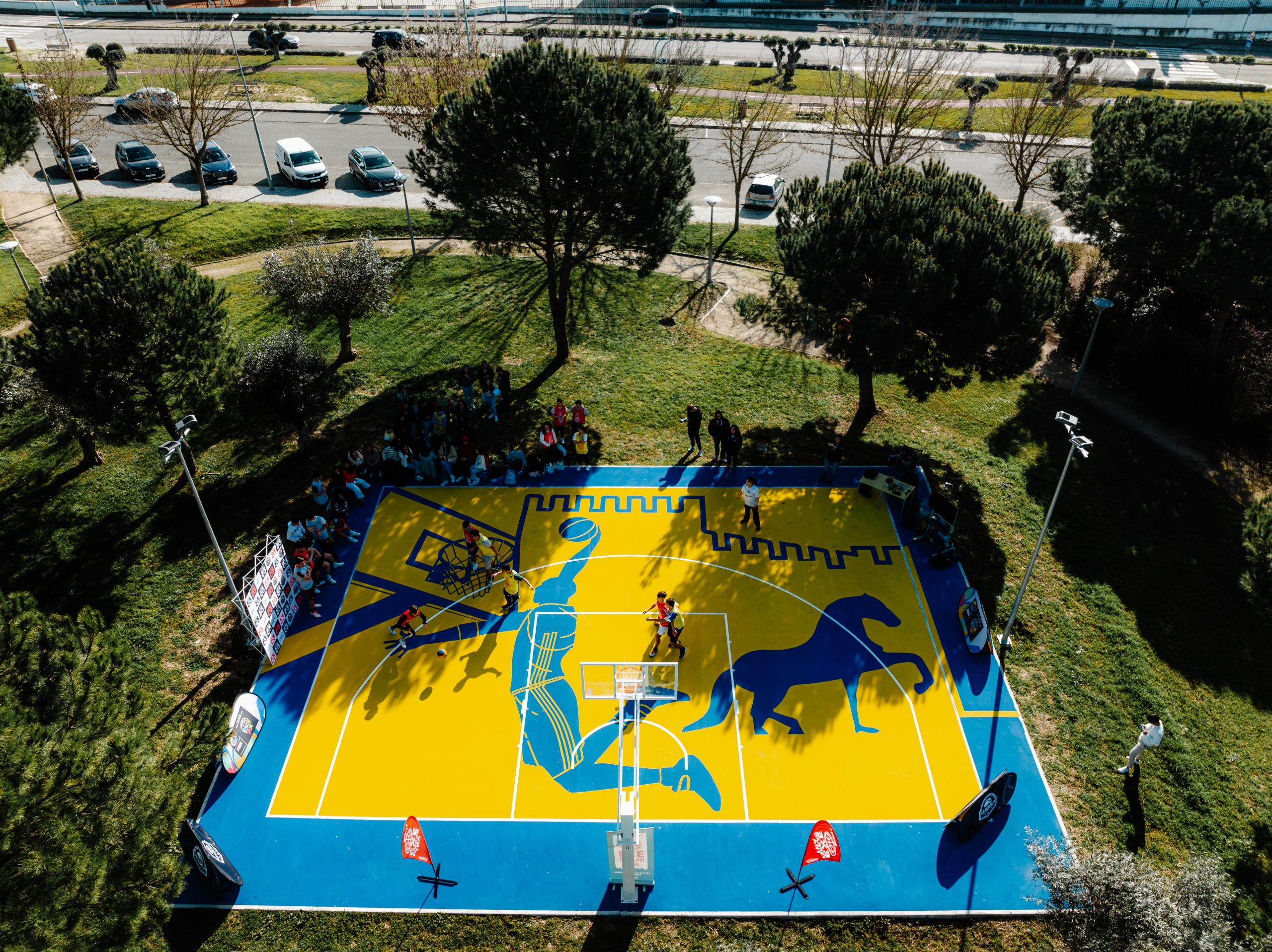 O projeto 3×3 BasketArt foi protagonista no arranque da semana ao celebrar a inauguração de dois novos campos de basquetebol 3×3, desta vez no Parque da Juventude (41°24’19.1″N 8°31’17.6″W), em Vila Nova de Famalicão. Na inauguração deste novo espaço requalificado, que contou com o apoio do Município de Vila Nova de Famalicão e da AB Braga, marcaram presença atletas de três clubes locais (FamaBasket – Clube Basquetebol de Famalicão, Famalicense Atlético Clube e RBDA – Ribeirão Basket Associação Desportiva) que tiveram a oportunidade de estrear de forma oficial os dois novos campos.