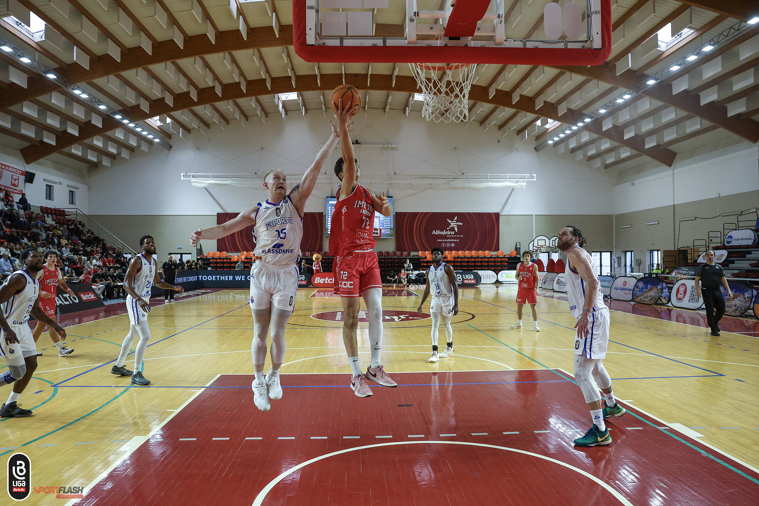 Seguiu-se a visita ao reduto do CBA Munícipio Albufeira, pautada também por sucesso – 64-82 -, alicerçado na produção de João Serra (16pts, 9res, 6ast; 27.5 val.), o mais destacado da partida, e Rafael Wildner (14pts, 7res, 1ast, 1rb, 1dl). Nos donos da casa, Diogo Piçarra (19pts, 4res) e Julio Cambudi (18pts, 5res, 4ast, 2rb, 1dl) reclamaram as atenções.