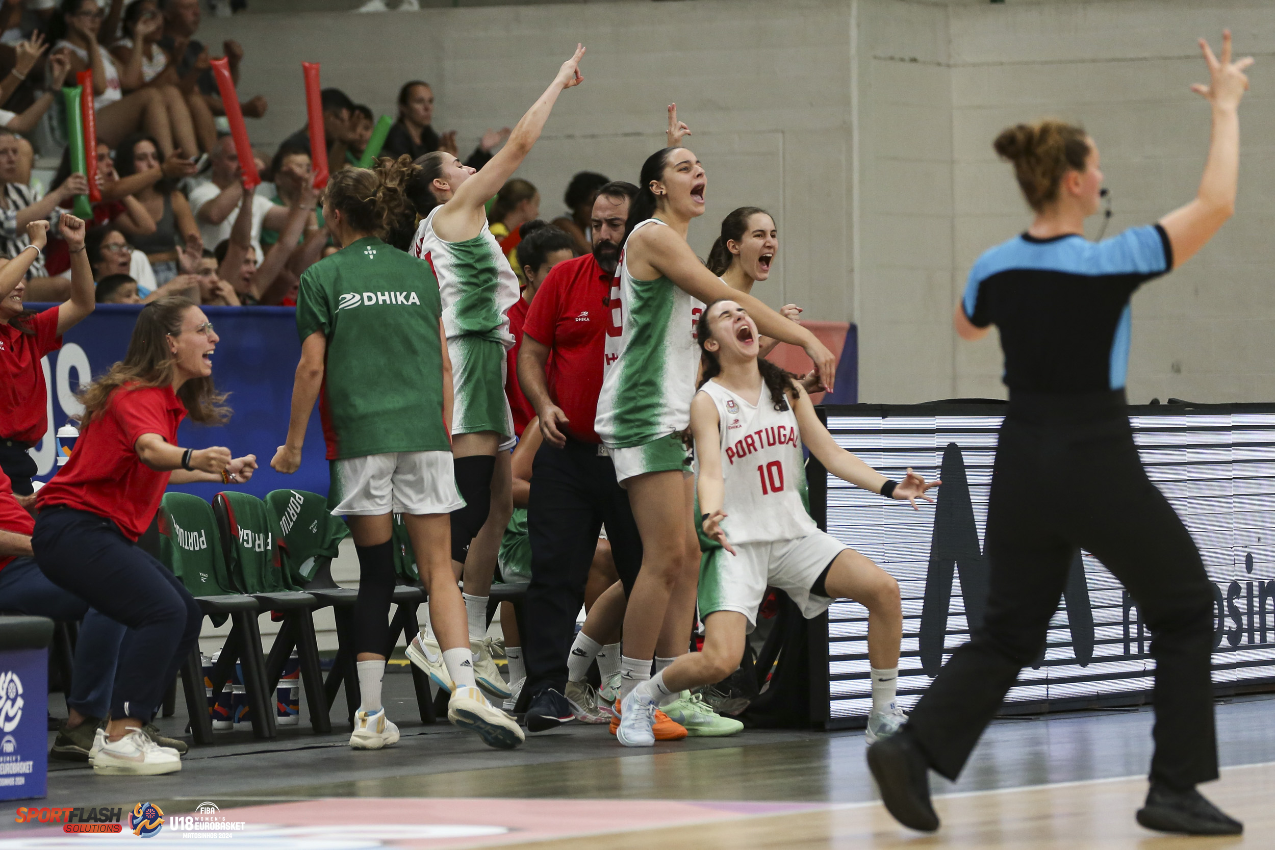 Após o intervalo, as comandadas por Agostinho Pinto, deram a volta ao marcador e entraram nos últimos 10 minutos com nove pontos de avanço, alcançando o parcial de 18-8. O jogo termina 63-56 com a vitória de Portugal e um pavilhão ao rubro, com a passagem aos quartos-de-final da competição.